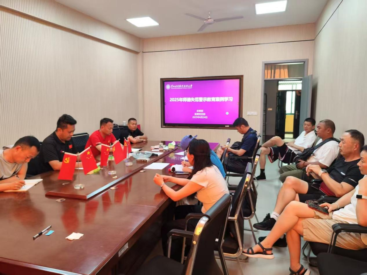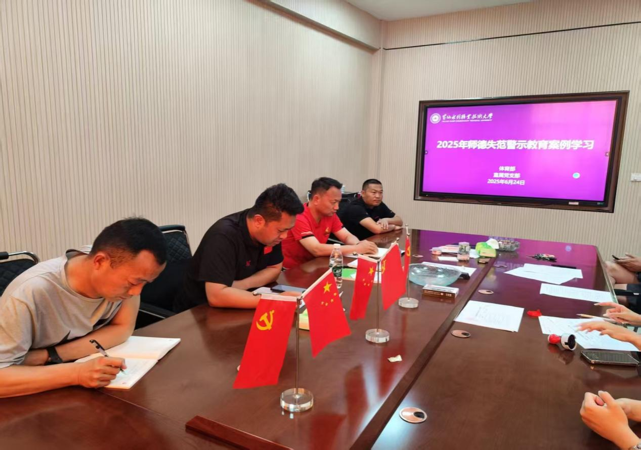 6月24日下午,体育部全体教师员工在王宁主任的带领下学习《高等学校教师职业道德规范》和《新时代高校教师职业行为十项准则》等规定,并传达了教育部关于高校教师师德失范行为处理的指导意见。王宁主任在会议中宣读了典型的师德失范案例,警钟长鸣。会议最后教师自查自省,争做优秀教师。
