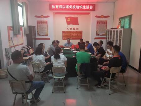 会议在庄严的国歌声中拉开帷幕,支部书记刘盎同志首先代表支部班子对体育部直属党支部“以案促改”做出阶段性工作报告并带头做出个人对照检查,然后向全体党员通报了全省教育系统“以案促改”典型案例。全体党员结合典型案例积极开展批评与自我批评,针对自身存在的问题,深刻剖析,查找思想根源,提出各自工作与学习的努力方向。