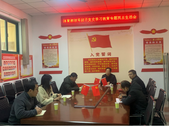 1月11日上午,体育部领导班子在体育部党员活动室召开了党史学习教育专题民主生活会。副校长刘守义全程参会并做点评讲话。会议由体育部直属党支部书记、主任刘盎主持,副主任蔡寄平、党政办公室主任贺若冰、支部组织委员刘虎、宣传委员张亚廷参会。