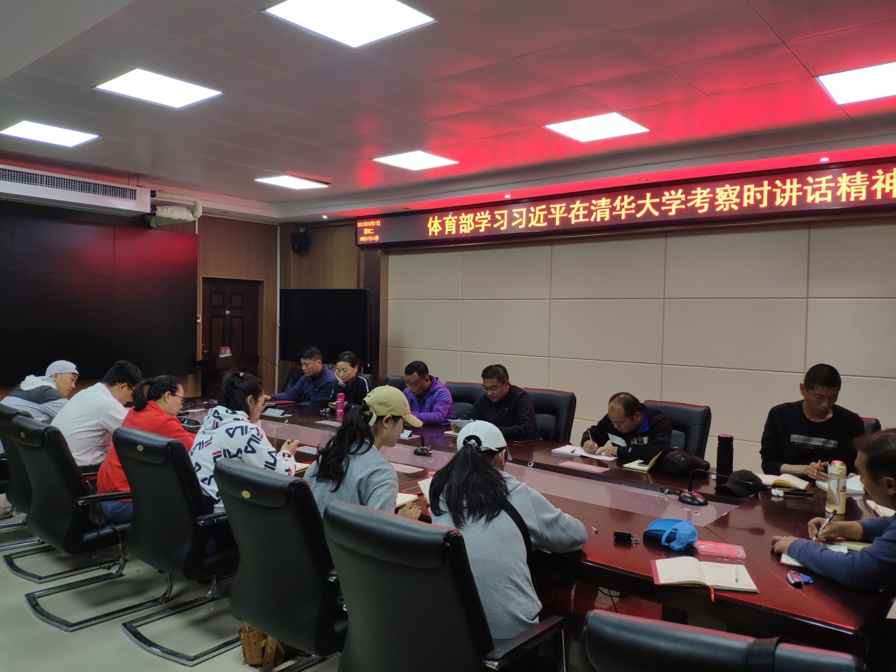 2021年4月27日下午,体育部直属党支部全体党员按照学校要求以及体育部“党史学习教育工作计划”安排,集中学习了“习近平在清华大学考察时讲话精神”,学习由体育部直属党支部书记刘盎主持。