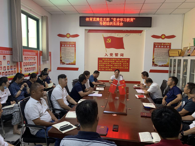 2021年7月17日下午16:00,体育部直属党支部在部门党员活动室召开了党史学习教育专题组织生活会,我校副校长刘守义同志以普通党员身份参加本次组织生活会,会议由体育部直属党支部组织委员刘虎老师主持,全体党员参会。