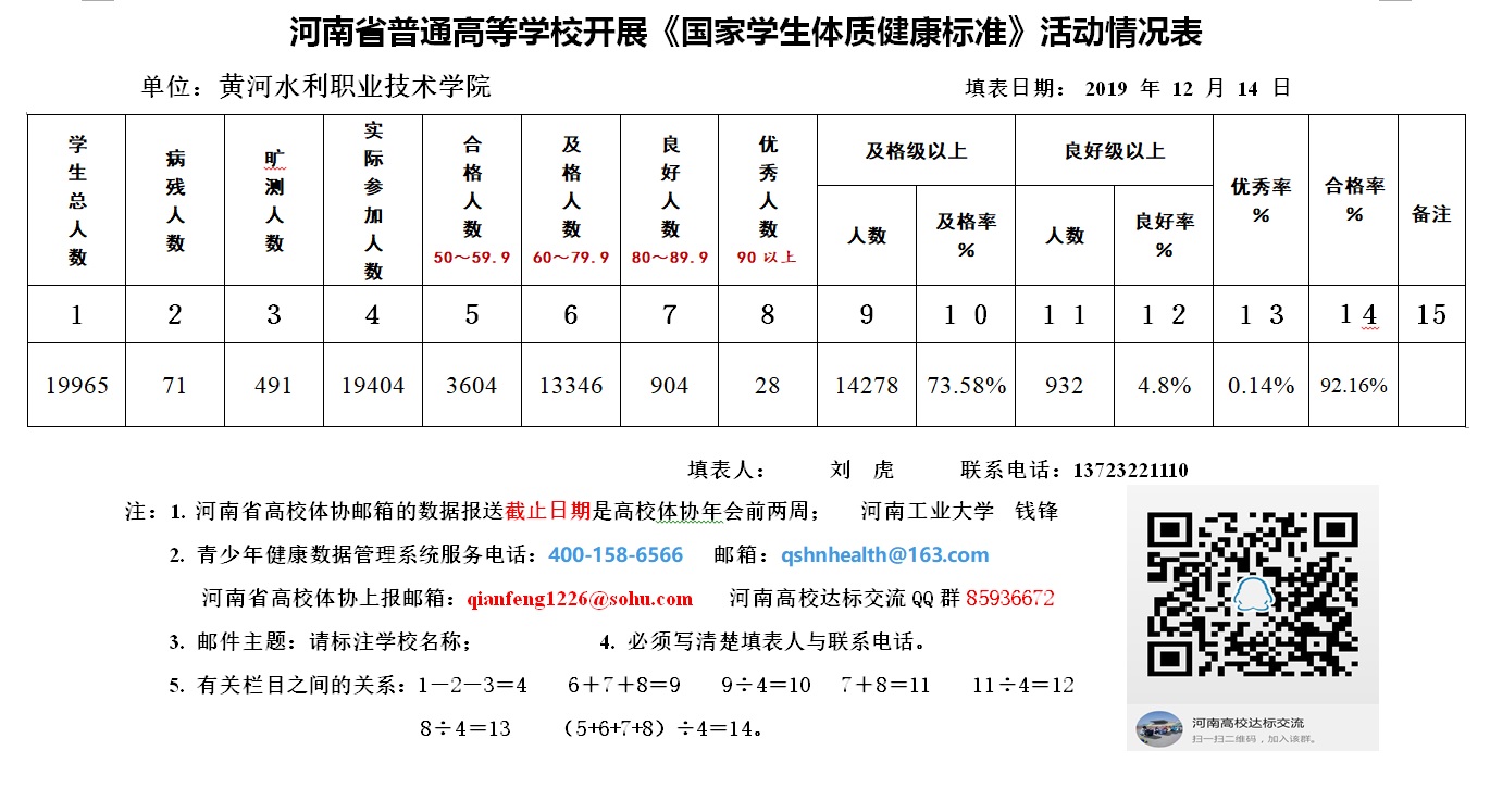 河南省普通高等学校开展《国家学生体质健康标准》活动情况表