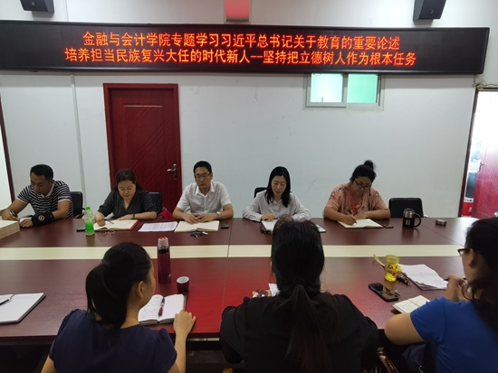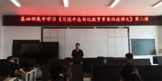 9月8日下午,我校各部门专题学习习近平总书记《培养担当民族复兴大任的时代新人------坚持把立德树人作为根本任务》的署名文章和《思政课是落实立德树人根本任务的关键课程》重要论述等内容。专题学习内容深刻阐述讲好思政课的重大意义,对提高思政课教师素养、推动思政课改革创新、加强党对思政课建设的领导提出明确要求、作出全面部署,强调教育是立德树人的事业,要把培育和践行社会主义核心价值观融入国民教育体系,要培养德智体美劳全面发展的社会主义建设者和接班人。通过此次学习,大家在思想上受到一次深刻的洗礼,深刻认识到思政课的重要意义,将在以后的工作中坚持全员、全方位、全过程育人理念,将社会主义核心价值观融入教育教学和管理服务各环节,纷纷表示,将以更加饱满的热情、更加昂扬的斗志、更加务实的作风,写好立德树人“奋进之笔”,把爱国情、强国志、报国行融入到日常教学中,为我校“双高校”建设及中原更加出彩,实现中华民族伟大复兴中国梦贡献智慧和力量。