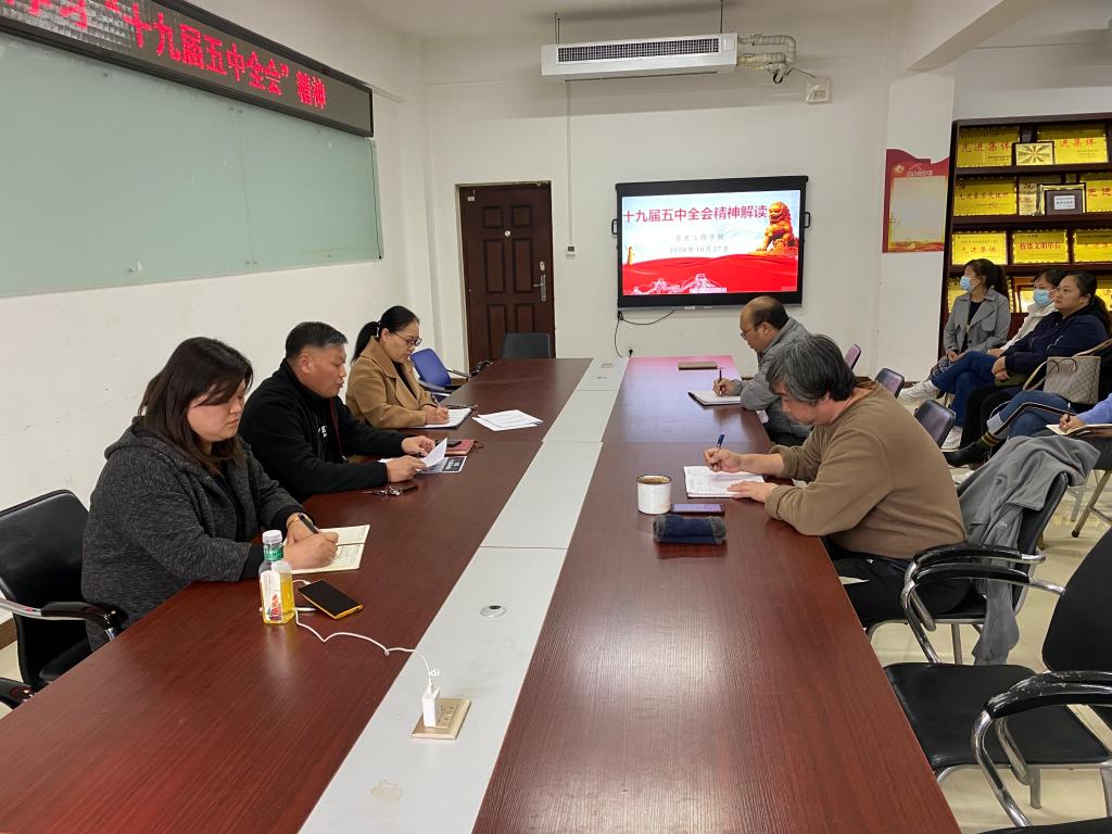 中国共产党第十九届中央委员会第五次全体会议于10月26日至29日在北京举行,全会审议通过了《中共中央关于制定国民经济和社会发展第十四个五年规划和二〇三五年远景目标的建议》。连日来,我校干部师生通过收听收看大会直播、召开集体学习会议等方式,认真学习党的十九届五中全会精神。(供图:相关各部门)