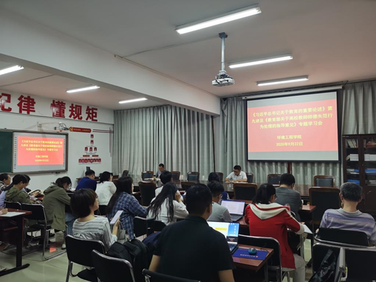9月22日下午,我校各部门专题学习《习近平总书记教育重要论述讲义》、《教育部关于高校教师师德失范行为处理的指导意见》等内容。大家纷纷表示,要牢记习近平总书记“四有”好老师要求,坚守师德底线、严守纪律和规矩,以先进典型为榜样,进一步增强事业心、责任感,用高尚的师德、规范的言行、无限的师爱,做党和人民满意的教师,为职业教育事业、为学校“双高校”建设做出更大贡献。