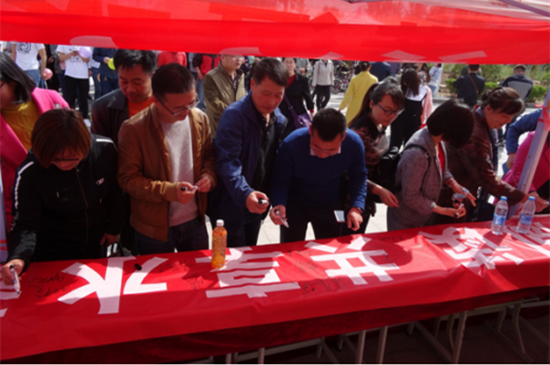 仪式上,图书馆馆长关六三致辞。他指出,实施“倡导全民阅读,建设书香社会”,是一项发展图书馆事业,倡导读书、传播知识、推动社会文明进步的社会文化系统工程。此次活动的开展,对提升我校图书馆服务水平,促进广大师生提升文化素养、传承优秀传统文化具有积极作用。他号召全体师生积极参与到读书活动中来,充分利用课余时间,使“书香”常伴身边。师生们在印有“数字阅读 共享水韵”字样的条幅上纷纷签名,并进行了扫码共读活动。