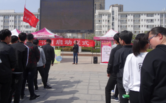 4月17日,我校2018年“数字共享 全民阅读”主题读书月活动启动仪式在扬帆广场举行。图书馆相关人员,土木与交通工程学院、管理系部分老师及200余名学生参加了仪式。