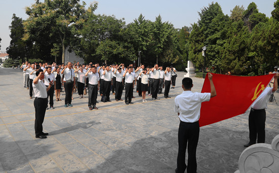 上午,暑期干部培训班全体学员来到焦裕禄纪念馆拜谒焦陵,在焦裕禄烈士墓前敬献花篮,缅怀焦裕禄烈士,学习焦裕禄精神,并在党旗前重温入党誓词。全体学员又来到兰考县展览馆,参观了焦裕禄事迹展厅和今日兰考展厅,通过大量有关图片、实物和珍贵影像资料,详细了解了焦裕禄“亲民爱民、艰苦奋斗、科学求实、迎难而上、无私奉献”的光辉事迹和高尚情操,全面了解了兰考人民战天斗地、治理“三害”的奋斗历程和英雄事迹。最后,全体干部来到焦桐前,再次聆听了焦裕禄同志治理风沙,尊重人才,带头植树造林,广栽桐树的感人事迹。