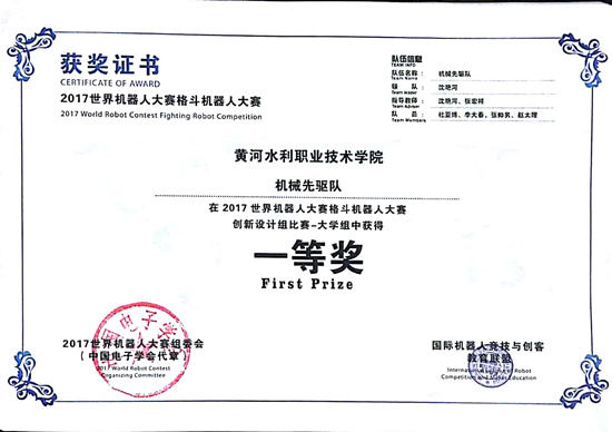 8月23日—27日,世界机器人大赛在北京举行,中共中央政治局委员、国务院副总理刘延东出席大会开幕式并讲话。我校派出由机械工程学院沈艳河、张宏祥等2名老师和8名位学生组成的两支代表队参加了世界机器人大赛-格斗机器人大赛。经过激烈角逐,我校参赛团队分别夺得创新设计组比赛一等奖、机器人格斗赛三等奖,实现了世界级技能大赛一等奖的零突破。