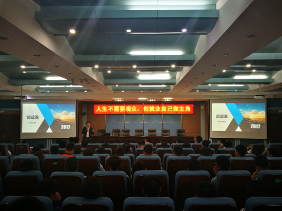 4月15日,由校团委和“黄河之星”众创空间在3号实训馆学术报告厅联合举办主题讲座,郑州大学张青山教授应邀做以《人生不需要观众,创就业自己做主角》为题的讲座。全校共有来自各院系的200余名学生参加活动。