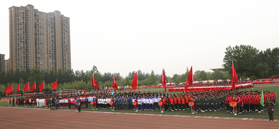 青春与梦想齐飞,激情与活力共现。4月14日上午,我校2016年春季田径运动会在祥云体育场隆重开幕。校领导许琰、刘国际、茹正波、王卫东、刘紫婷、杨士恒、刘卫锋等出席了开幕式,运动会主席团成员、各院系处负责人在主席台就座,部分师生员工参加了开幕式。开幕式由校党政办主任刘玉宾主持。