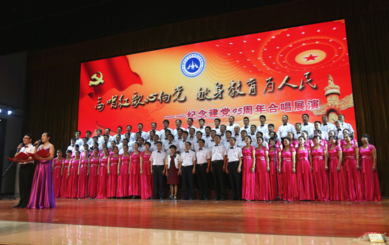 表彰大会结束后,进行了“高唱红歌心向党,献身教育为人民”主题的庆祝建党95周年合唱展演活动。全校13个党总支代表队,用激情澎湃、深情满怀的歌声表达对党的无限忠诚和热爱。出席大会的校领导带领机关全体党员高唱《没有共产党就没有新中国》《团结就是力量》,表达全校师生在校党委的领导下,坚定理想信念,坚持职教改革,团结奋进、开拓创新,共创黄河水院更加灿烂辉煌明天的万丈豪情和百倍信心。活动在全体党员高唱《国际歌》中圆满闭幕。