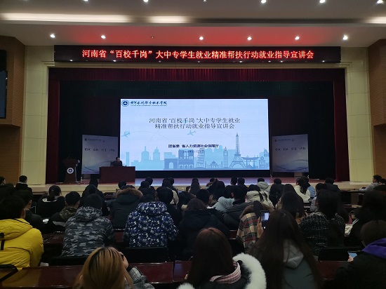 11月26日,由共青团河南省委、河南省人力资源和社会保障厅主办,我校承办的河南省“百校千岗”大中专学生就业精准帮扶行动就业指导宣讲会在我校大学生活动中心报告厅举行。来自我校各学院的700余名学子聆听了讲座。