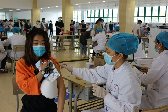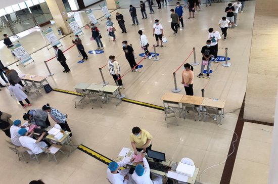 为保证疫苗接种工作顺利开展,我校制定了详尽的工作方案。按照开封卫健委以及学校党委疫情防控的工作要求,坚持“安全、稳妥、有序、应接尽接、完全自愿”的原则按步骤、分阶段、分批次实施。接种现场师生排队井然有序,医务人员保障到位,120急救车现场值班值守,志愿者认真维护秩序。三天共有9868名师生完成疫苗接种,筑牢了校园防疫屏障。(摄影:党委宣传部 王红)