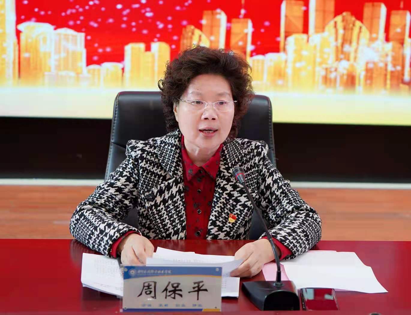 周保平向辛勤工作、无私奉献的全体师生和相关单位表示衷心地感谢,向受到表彰奖励的单位和个人表示热烈的祝贺。她指出,今年我校一举夺得“互联网+”大赛国赛1项金奖、1项银奖和3项铜奖,在该项赛事上实现历史性突破,是我校创新型人才培养的标志性成果,也是创新创业教育成就的重要体现,更是双高建设的重要成果。为做好2022年创新创业教育工作及第八届“互联网+”大赛的参赛工作,她提出四点要求。一是要充分认识到把创新创业教育全面融入人才培养体系的重大意义。学校要始终坚持创新引导创业,创业带动就业,把创新创业教育优势转化为学校治理效能,继续擦亮“全国深化创新创业教育改革示范高校”品牌。二是要坚持以赛促教、以赛促学、以赛促创,形成三递进创新型人才培养新模式。要以创新创业竞赛活动为载体,努力实现大学生创新创业与学业、专业、就业相结合。探索“专业为基打底子+创新引领想点子+双创实践趟路子”三递进式的创新型技术技能人才培养路径。三是要大力推进科创融合,鼓励师生共创,提升科研反哺大赛的水平。各市级以上科研平台、各校级创客空间,要加强校企合作,整合优质资源,主动对接政府、企业,了解产业发展和行业需求,大力开展技术服务,在学校和市场、产业之间架起一条快车道,推动产学研用一体化。四是要统一思想、提高认识、强化保障,推动学校创新创业大赛工作迈上新台阶。各职能部门和各学院要进一步提升对大赛重要性的认识,认真落实相关激励政策,做到认识到位、策划到位、落实到位、组织到位和服务到位,确保在2022年大赛中再创佳绩。