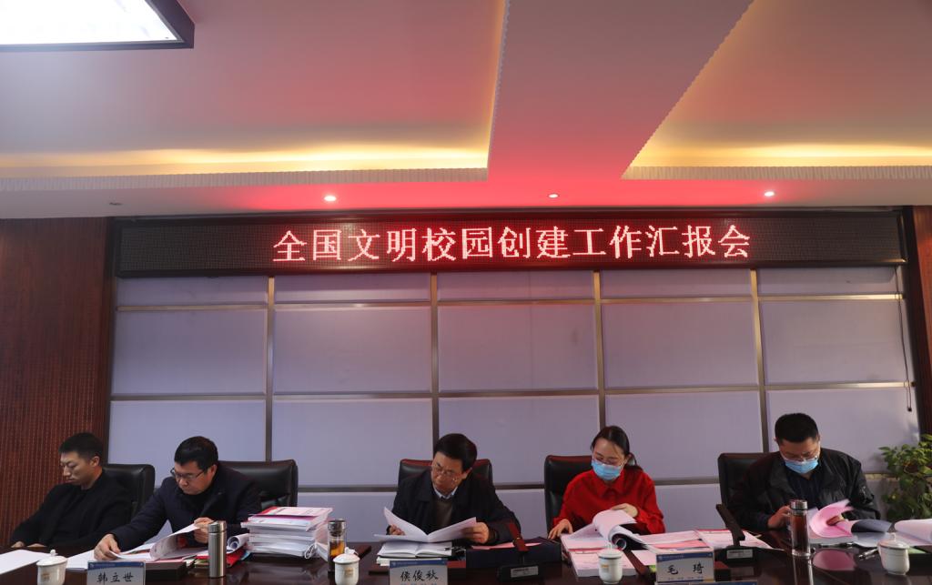 11月19日下午,以开封市政协三级调研员侯俊秋为组长的文明校园检查组莅临我校,以听取汇报、查阅资料、实地查看等方式,对我校2021年度全国文明校园创建工作进行考核。在校全体校领导,精神文明建设主体部门负责人、各党总支(直属党支部)书记等参会。汇报会由党委副书记刘卫锋主持。
