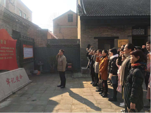 参观学习后,全体党员同志面对党旗重温了入党誓词,党总支书记樊建科同志教育广大党员同志要切实把党性教育的学习成效转化为推动工作的实际成果,确保党的十九大精神真正落细落实,不忘初心、牢记使命,力争把学校和学院的各项事业推向新的高度。