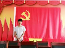 党员王智斌 ,在黄河水院机械学院 党员郭非帆,在六四六社区与党徽合影