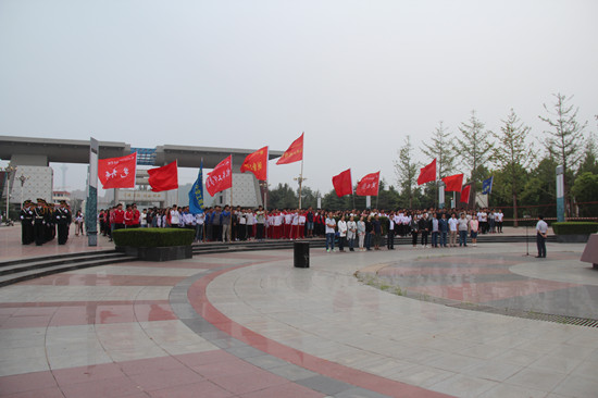 新学期,新起点,新希望。8月28日开学第一天,我校在明志广场举行新学期升旗仪式。学生处处长刘许亮、团委书记李聪、各院(系)分团委书记以及全校600余名学生干部等参加升旗仪式。