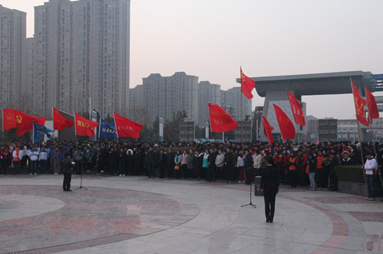 为纪念“一二·九”爱国运动81周年,弘扬爱国主义精神,12月9日早上7:00,校团委在明志广场举行纪念“‘一二·九’爱国运动”升旗仪式暨新生入团仪式。校团委全体人员、各院(系)分团委书记及近千名新老团员参加了活动。