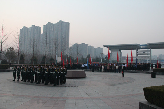 新学期,新气象。2月13日早上7:00,我校在明志广场举行新学期升旗仪式。校团委全体人员、各院系分团委书记以及全校1000余名学生干部等参加升旗仪式。