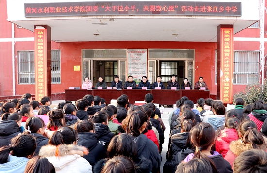 1月18日下午,我校团委赴河南省范县张庄乡中学开展精准扶贫活动,举行了“大手拉小手,共圆微心愿”关爱贫困留守儿童捐赠仪式。范县团县委书记李鹏宇、教育局副局长韩永先、张庄乡中学校长白斌,我校团委书记李聪、副书记郝黎闻及部分学院分团委书记和学生干部代表等参加了捐赠仪式。
