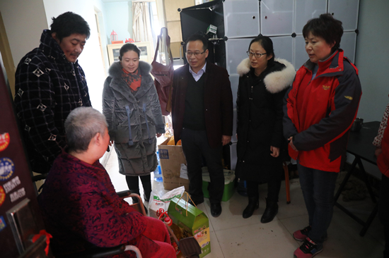于兆国一行随后来到大宏社区。大宏社区是我市较大的经济适用房、廉租房小区,是我校多年来持续帮扶的主要社区,其中相当一部分居民无固定收入,家庭生活困难。在社区副主任王丽萍的陪同下,文明办人员带着鸡蛋、食用油、大米、面粉等生活用品,慰问了社区贫困居民,并与他们拉家常,详细了解其目前的生活情况,鼓励其顽强面对生活困难,对未来美好生活充满信心。亲切感人的话语使贫困户深受鼓舞,并深切感受到节日的温暖和社会的关爱。社区副主任王丽萍对我校开展的走进社区送温暖活动表示感谢。于兆国表示,我校会坚持发挥全国文明单位的示范引领作用,积极履行社会责任,为共建文明、和谐、幸福社区做出贡献。