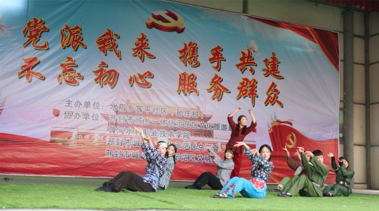 3月8日上午,以“党派我来,携手共进,不忘初心,服务群众”为主题的开封市示范区水稻乡富平社区(孙庄村)第十三届科普文化节暨表彰大会,在孙庄科普大舞台举行。我校大学生艺术团的19名学生在校党委宣传部、校团委组织下助演此次科普文化节开幕式,开展新农村文明共建活动。长期以来,我校在结对帮扶孙庄村(富平社区)扎实推进美丽乡村建设方面深入细致地开展了大量工作、做出了突出贡献,在文化节开幕式上被授予锦旗。