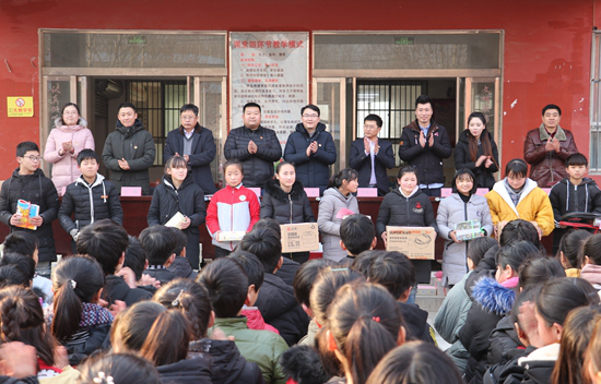 1月18日下午,我校团委赴河南省范县张庄乡中学开展精准扶贫活动,举行了“大手拉小手,共圆微心愿”关爱贫困留守儿童捐赠仪式。范县团县委书记李鹏宇、教育局副局长韩永先、张庄乡中学校长白斌,我校团委书记李聪、副书记郝黎闻及部分学院分团委书记和学生干部代表等参加了捐赠仪式。