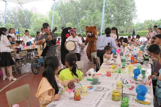 6月1日下午,风雨球场内一片欢声笑语,来自不同部门教职工的子女在机械工程学院党员志愿者的带领下,开展了丰富多彩的活动。活动中,该学院分工会及学生党员服务队为孩子们带来了精彩的吉他弹唱、武术表演等节目以及石膏娃娃等精美礼品,一百多个石膏娃娃,很快都找到了自己的“小主人”;孩子们全神贯注的描绘着手中的作品,可爱的玩偶还和孩子们一起合影。活动过程妙趣横生,丰富的活动让每个孩子都在欢乐中收获成长,感受幸福。