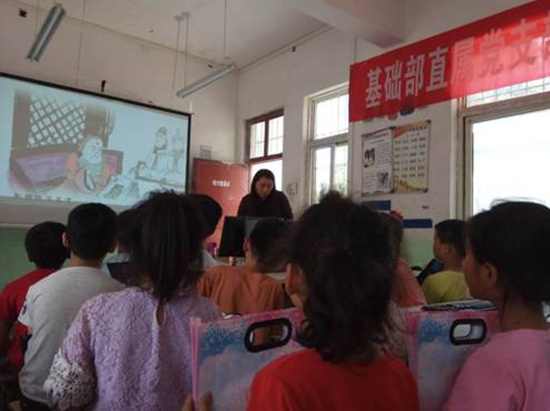 6月19日下午,基础部直属党支部全体党员在党支部书记郑洪波的带领下来到刘店乡郭景村小学开展“‘春蕾行动’一支部一品牌”活动。