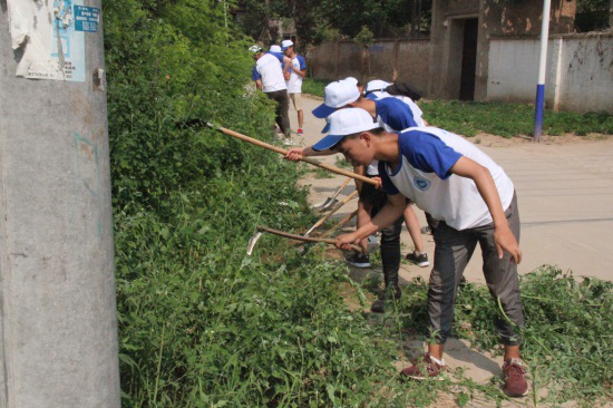 近年来,我校多次组织学生深入郭景村举行“美丽乡村行”社会实践活动,使村容村貌有了显著改善,我校学生的吃苦耐劳精神得到了村民们的一致好评。