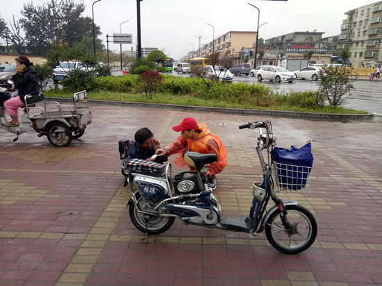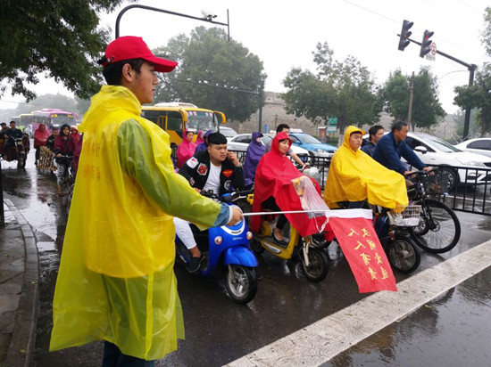 志愿者雨天坚守在岗位上