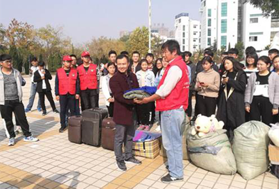 近日,我校诚信自强联合会联合“开封市志愿者协会”开展向贫困山区捐赠过冬衣服活动。捐赠仪式在我校举行,“衣往情深 捐资助人”志愿者协会开封区负责人接收了我校所捐衣物。