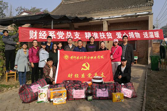 为持续做好精准扶贫工作,11月8日上午,财经系党总支书记殷莺、系副主任吴宗奎带领该系教工党员代表深入到祥符区刘店乡郭景村开展“精准扶贫 爱心捐物送温暖”活动,为结扶帮扶的5家贫困户送去关心和帮助。