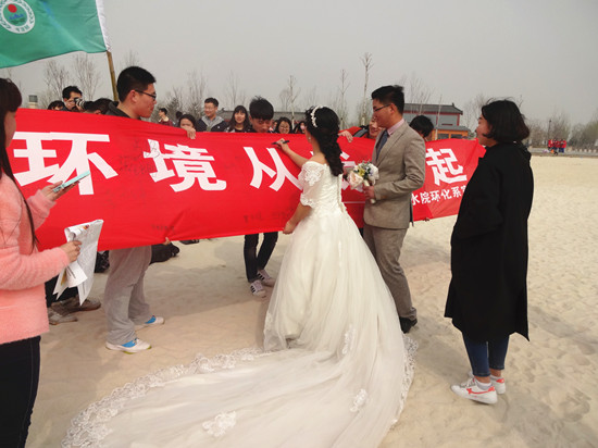 3月5日,环境与化学工程系的30多名志愿者来到汴西湖银滩广场开展“践行雷锋精神,保护环境从我做起”主题宣传活动。活动中,志愿者沿湖捡拾垃圾,高举“环保使者”的绿色旗帜,向市民宣传“保护环境,从我做起”的环保理念,受到市民的欢迎。在志愿者的带动下,游玩的人们也主动加入到捡拾垃圾志愿服务活动中来。(环境与化学工程系 李孝坤)
