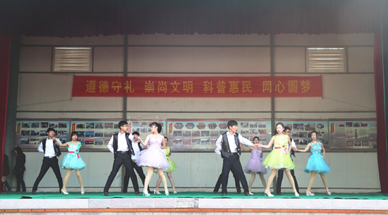 孙庄村(富平社区)第十届科普文化节以“遵德守礼、崇尚文明、科普惠民、同心圆梦”为主题,对友好结对帮扶的黄河水利职业技术学院、预备役陆军一三六师、开封市科学技术协会、开封植保站、开封农林科学研究院等单位赠送锦旗,展望帮扶工作新前景;对在文明社区建设中表现优异的人员和家庭进行表彰,评先奖优树典范,奖项有2015年度优秀共产党员、先进工作者、光彩事业奖、十佳孝子(好媳妇)、五好家庭文明户等。在文化表演环节,我校学生助演的舞蹈《十里春风》,舞姿优雅、配合默契,展现了大学生的青春之美和良好修养,赢得观众热烈的掌声。开封市歌舞剧院的歌舞、戏曲、杂技等节目精彩纷呈,群众自编自演的盘鼓、舞龙、舞蹈、舞狮、快板等节目,更是充分展现了社区居民健康文明、积极向上的精神面貌与和谐幸福的生活状态。来自开封市第二中医院等单位的专家义诊团队也为社区群众开展了义诊活动。