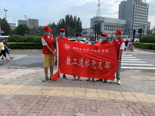 为了弘扬“奉献、友爱、互助、进步”的志愿精神,进一步提升公民出行安全意识,营造和谐文明交通新风尚,8月14日上下午城市交通的两个高峰时段,黄河水利职业技术学院土木与交通工程学院教工道桥党支部联合“小水滴”文明交通志愿服务队在宋城路与夷山大街交叉口开展了文明交通志愿服务“示范岗”活动,活动共有16名教工和学生党员志愿者参加。