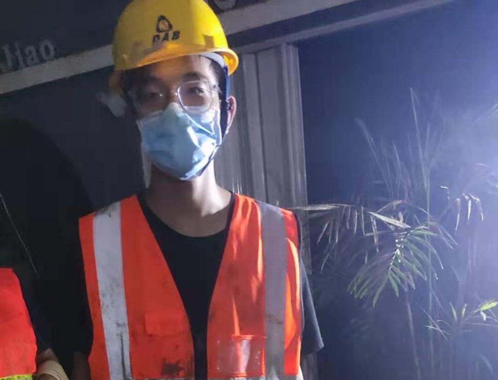 张旭涛,机制2001班学生。7月21日至7月23日期间,在南阳淅川地区和广大志愿者一起协助马路工人清理路面。