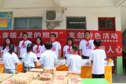 “为留守儿童插上爱的翅膀”是水利工程学院教工水工技术与管理支部特色品牌活动,已持续开展5年10次。活动以“真诚、真心、真爱、真行动”为原则,充分体现了教育部“双带头人”教师党支部书记工作室党员教师对留守儿童的深切关爱。本次活动中水工技术与管理支部与正大教育集团党支部共同为孩子们捐赠桌椅60套、图书1000册、书包60个、作业本1400本、中性笔200支、T恤衫60件、洗手液60瓶、口罩300副及其他儿童节礼品。活动的开展,为孩子们带去了内心的温暖,增强了留守儿童在学习、生活、人际交往和自我意识等方面的适应能力,促进了留守儿童的全面健康成长。