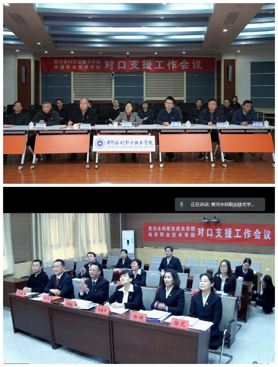 12月23日下午,我校与哈密职业技术学院对口支援工作视频会议在4号实训楼演播厅召开。我校党委书记周保平,党委副书记、校长胡昊,党委副书记、工会主席杨士恒,党委副书记刘卫锋,副校长刘玉宾、菅浩然、刘守义出席会议。哈密职业技术学院党委书记王瑞生,纪委书记沈岩华,副院长沙热木·吾斯曼、张伟宏、徐芃等出席会议。双方相关部门负责人参加了会议。会议由胡昊主持。此次会议,是我校作为全国“双高计划”A档建设单位,积极落实《教育部办公厅关于进一步组织优质资源对口支援新疆职业教育高质量发展的通知》(教职成厅函〔2021〕11号)要求,推进对口支援工作的重要会议。