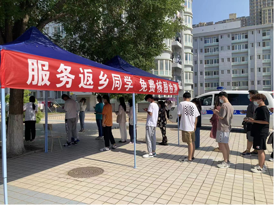 免费核酸进校,解学生离校之“需”。为方便学生离校前核酸检测,学校联系医疗机构来校驻点,为有需要的同学提供免费的核酸检测服务。学校科学设置检测流程,组织志愿者现场提醒排队同学规范佩戴口罩、保持一米距离,保障了核酸检测顺利、高效进行。