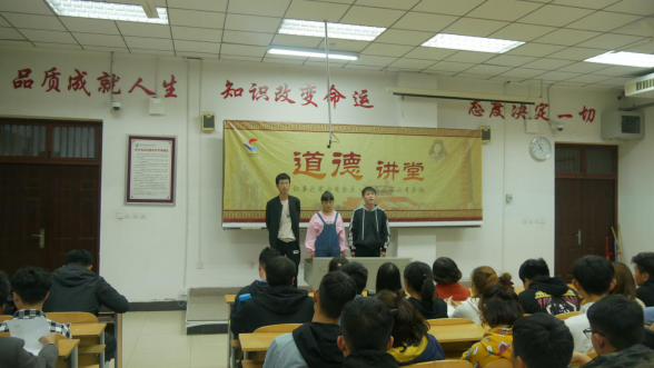 我院于2018年10月31日在教学楼6103教室开展道德讲堂活动。参加活动的成员有分团委书记戚亮、李凤琴、孙晓蒙、靳童瑶老师,以及我院学生会代表和大一新生。此次活动由我院社联主持。