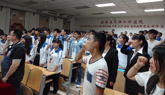 最后,大家一起做出庄严承诺:从我做起,并带动身边的人,为保护美丽的校园和城市做出力所能及的贡献。