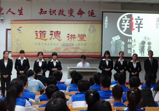 活动共分“唱一首道德歌曲”、“辩一下道德环境”、“观一段环保视频”、“学一下老人楷模”、“讲一段真实故事”、“发一段道德感悟”、“宣一段刻骨誓言”等七个环节。