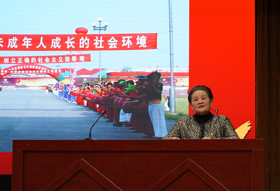 郭建华以“不忘初心、牢记使命——一句承诺坚守农村放映45年”为题,用朴实的语言、鲜活的事例,从“百年红色电影 筑牢初心使命”“学习焦裕禄精神 激励为民情怀”“力行践初心 为民办实事”“巾帼心向党 奋斗新征程”四个部分生动讲述了自己平凡而又伟大的电影放映事业生涯。结合自己的经历,郭建华为同学们分享了她对道德、幸福感、诚信的体会:道德是担在每一个人肩上的使命和责任,贵在去做,贵在做好,贵在坚持;只有找到了正确的幸福观,才能感受到人生的幸福感;诚信就是言必行,行必果,说了就要做,做了就做好,一撇一捺写人格,一诺千金不打折。她说,我为农民放电影 45 年没有打折,还是当年承诺的一句话“只要乡亲们喜欢看,俺情愿当一辈子乡村放映员”。