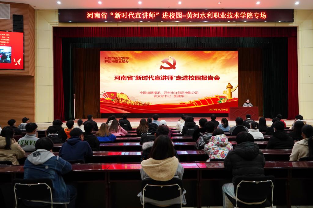 为深入学习贯彻习近平新时代中国特色社会主义思想,加强和改进大学生思想道德教育12月14日,我校邀请第七届全国诚实守信道德模范、河南省“新时代宣讲师”郭建华到学校为广大师生作专题宣讲报告。报告会由党委宣传部副部长杜丙辰主持。