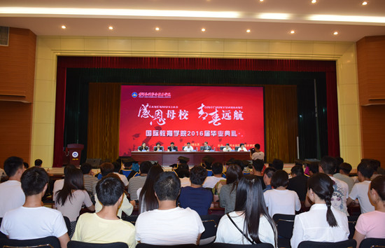 6月8日上午,国际教育学院在学生活动中心报告厅隆重举办“感恩母校,青春远航”2016届毕业典礼。澳大利亚沃东加TAFE学院校长Mark Dixon,我校党委书记许琰,校党委副书记、校长刘国际,副校长刘紫婷等出席毕业典礼。国际教育学院院长陶永霞主持典礼仪式。