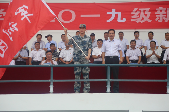 校党委书记许琰向军训团首长授团旗,标志着我校2019级新生为期12天的军事训练工作正式拉开帷幕。