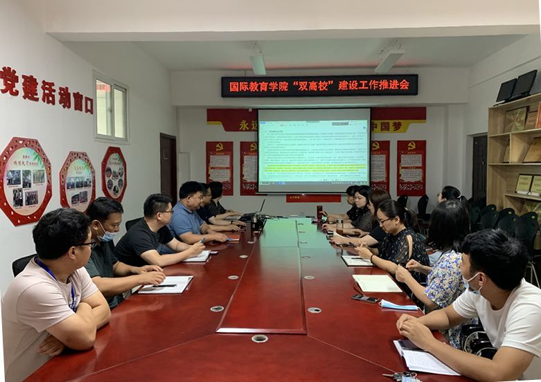 2020年7月1日,国际教育学院在SY5503会议室召开2020年度“双高校”建设工作推进会,国教院全体教职员工参会。国教院领导班子、全体科级以上干部、教研室主任参加现场会议,其余教职工通过线上腾讯视频会议参会。